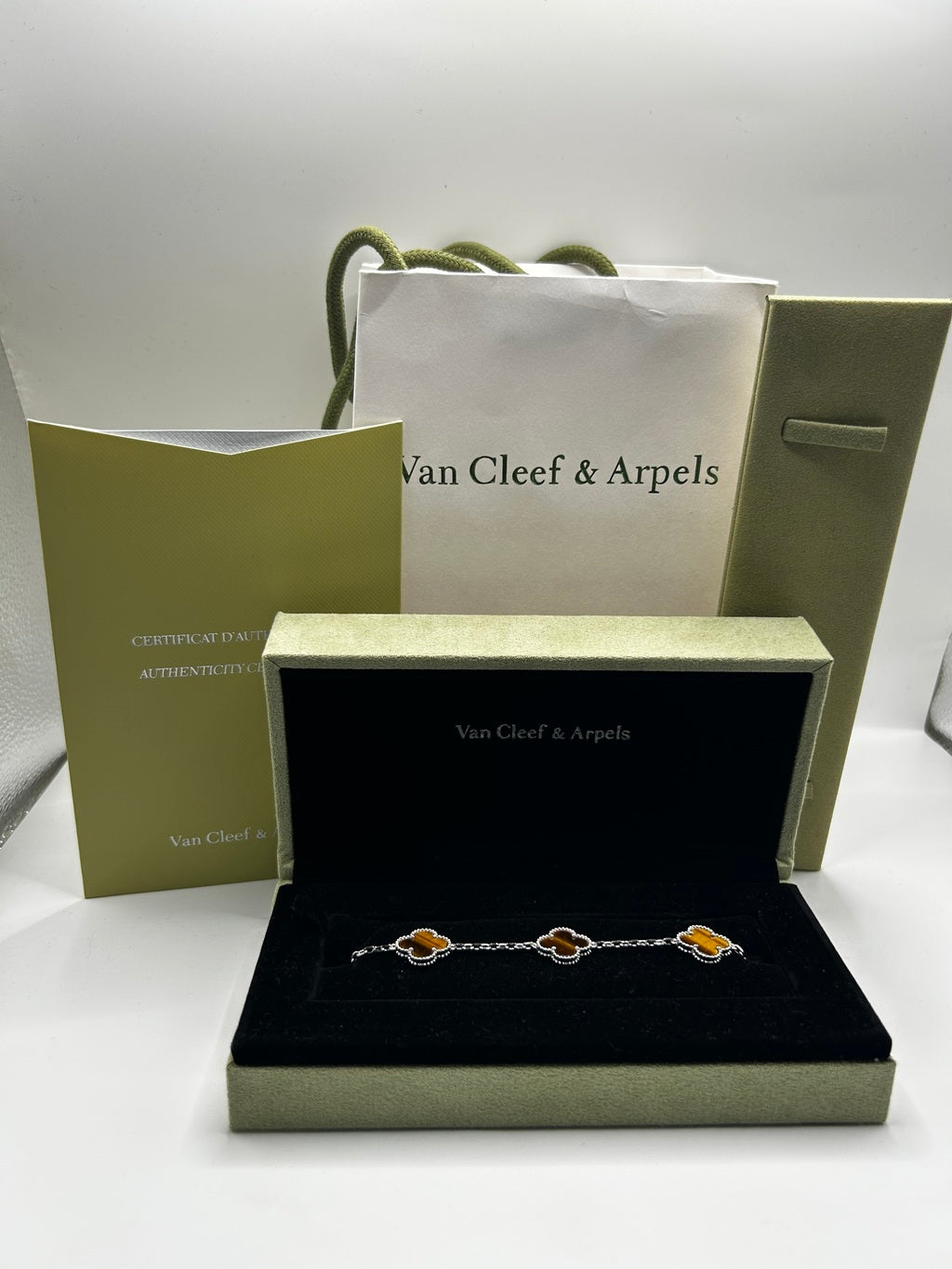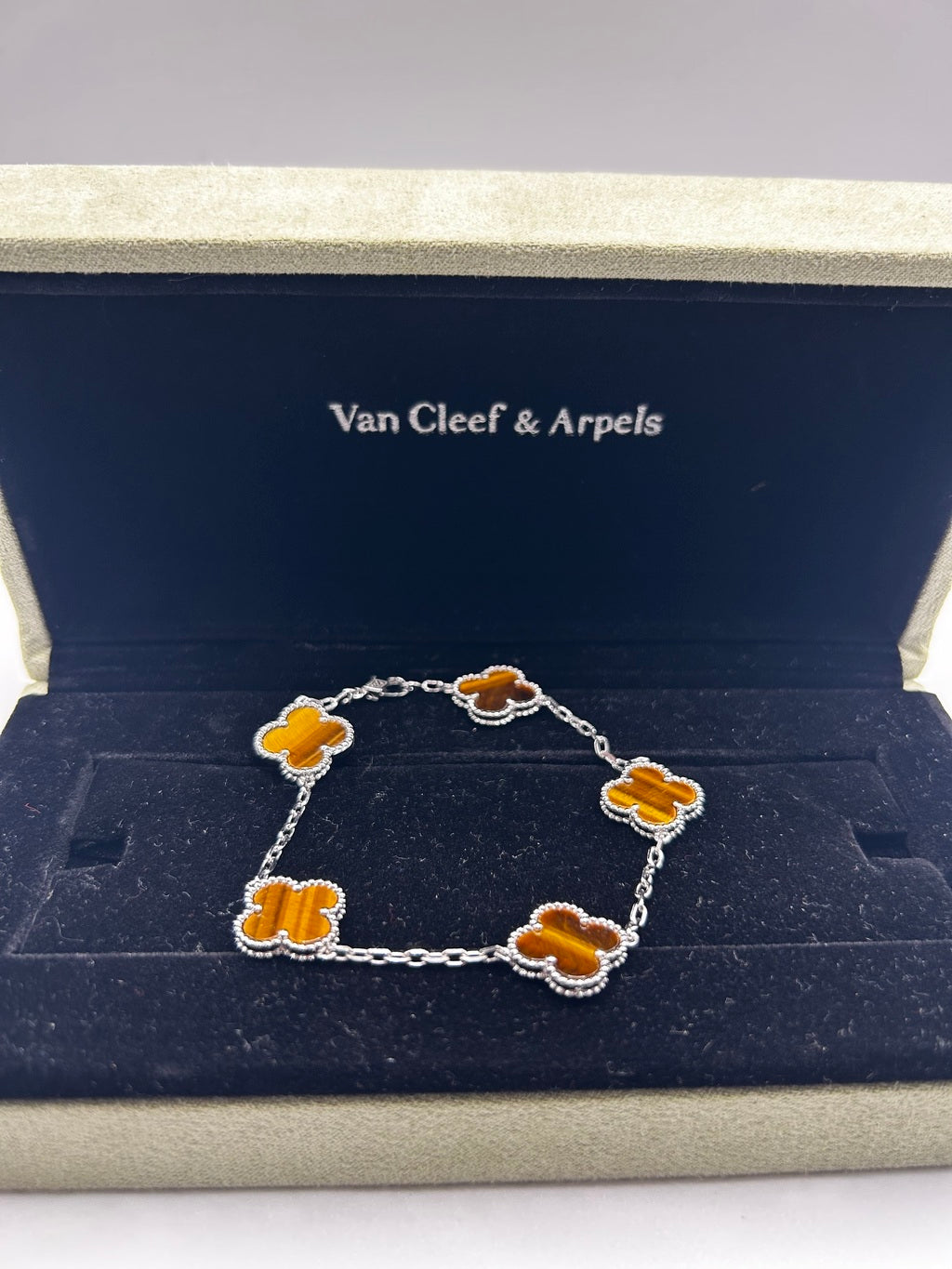Pulsera Vintage VCA Ojo de Tigre/Oro blanco